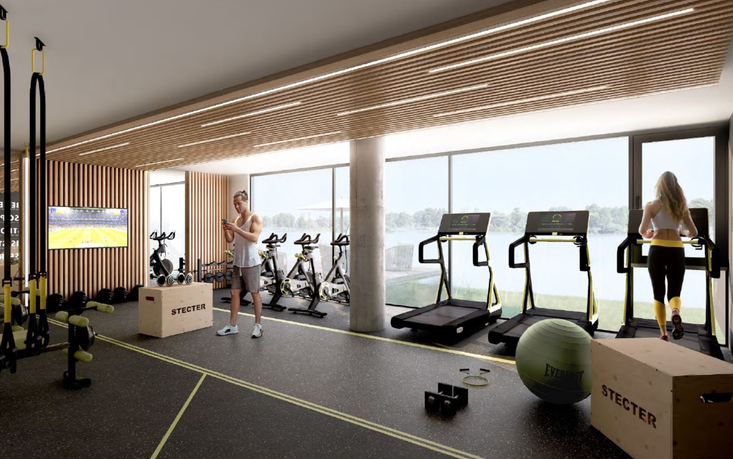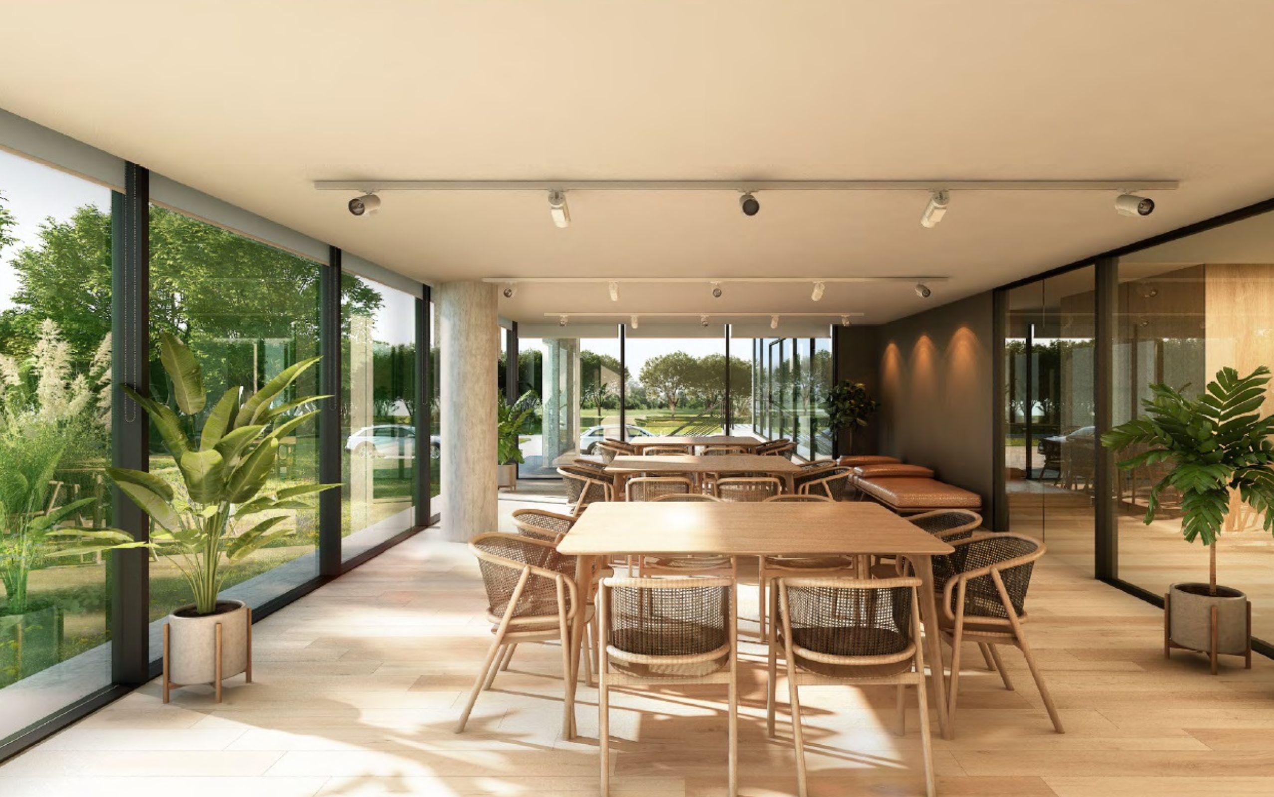 Diseño y Paisaje: La arquitectura de Bellevue sobresale por su diseño volumétrico y la elección de materiales, lo que proporciona una notable permeabilidad visual. Esta configuración permite que la tranquilidad del lago sea visible tanto desde el interior de las viviendas como desde los alrededores. Un jardín verde elevado y la superficie del lago y vista rural de Canelones forman un paisaje único que se puede disfrutar desde cualquier dirección del edificio.
