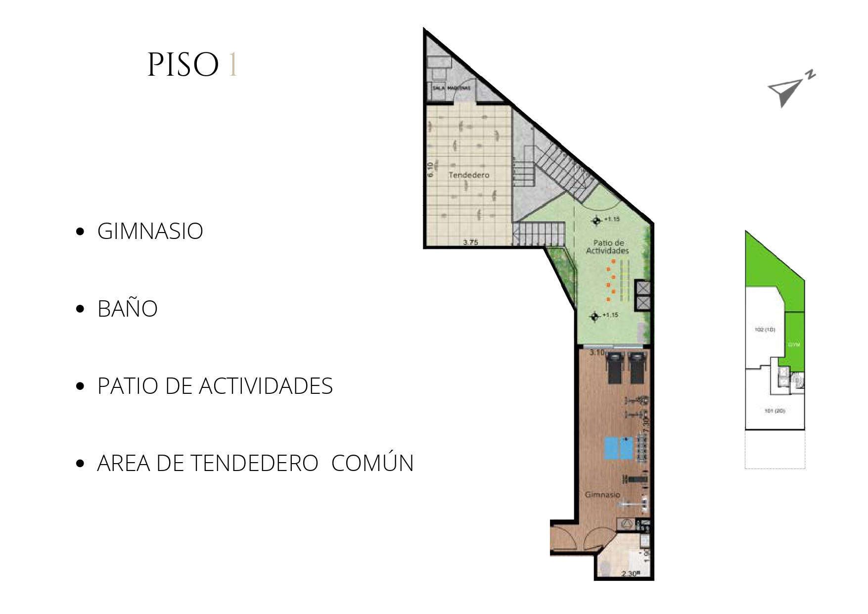 - Gimnasio y Áreas de Actividad Física: Un gimnasio totalmente equipado en el primer piso ofrece un espacio ideal para mantenerse en forma, complementado por un patio exterior diseñado para actividades al aire libre.
