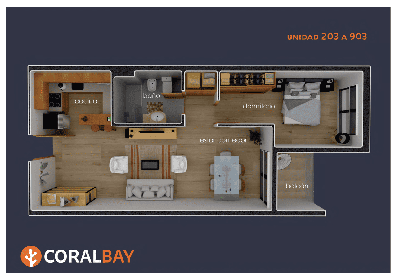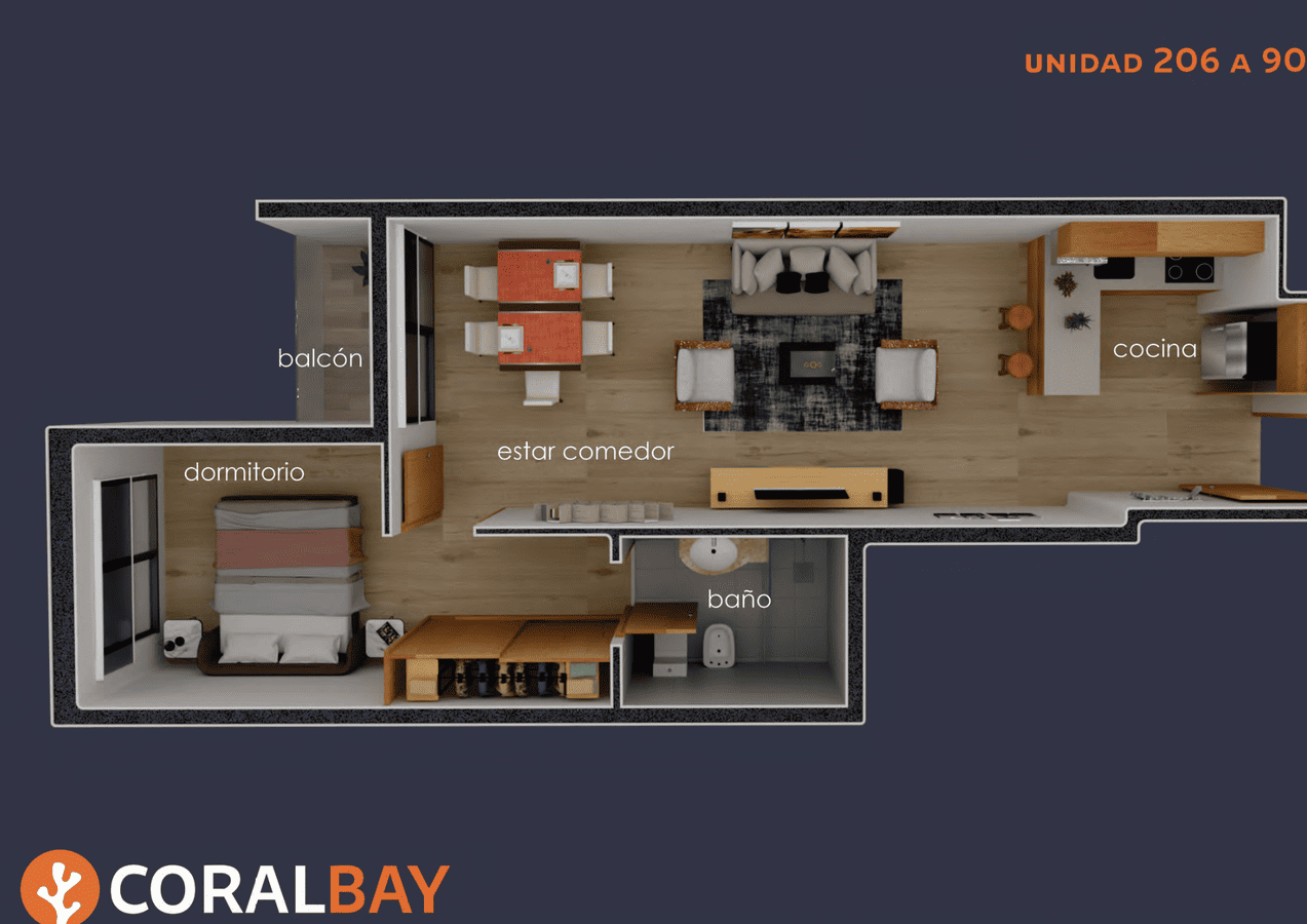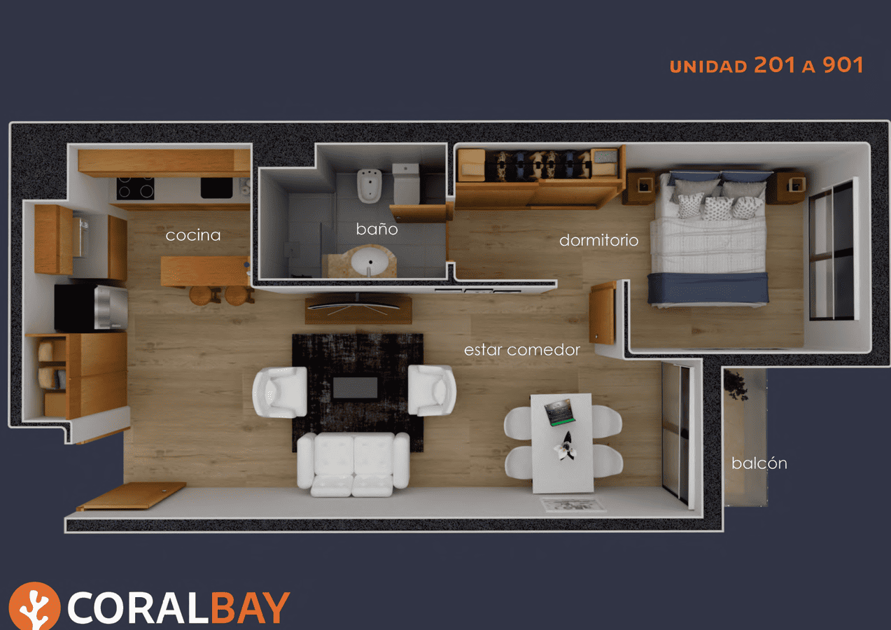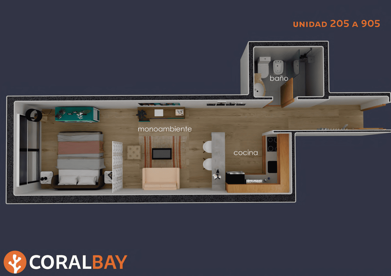 Coral Bay propone unidades monoambiente y de 1 dormitorio diseñadas bajo un concepto de funcionalidad y confort. Construido con sistema tradicional, garantiza solidez, durabilidad y una excelente calidad constructiva. Sus espacios amplios, bien distribuidos y con gran entrada de luz natural generan ambientes cálidos y eficientes, ideales tanto para vivir como para invertir.