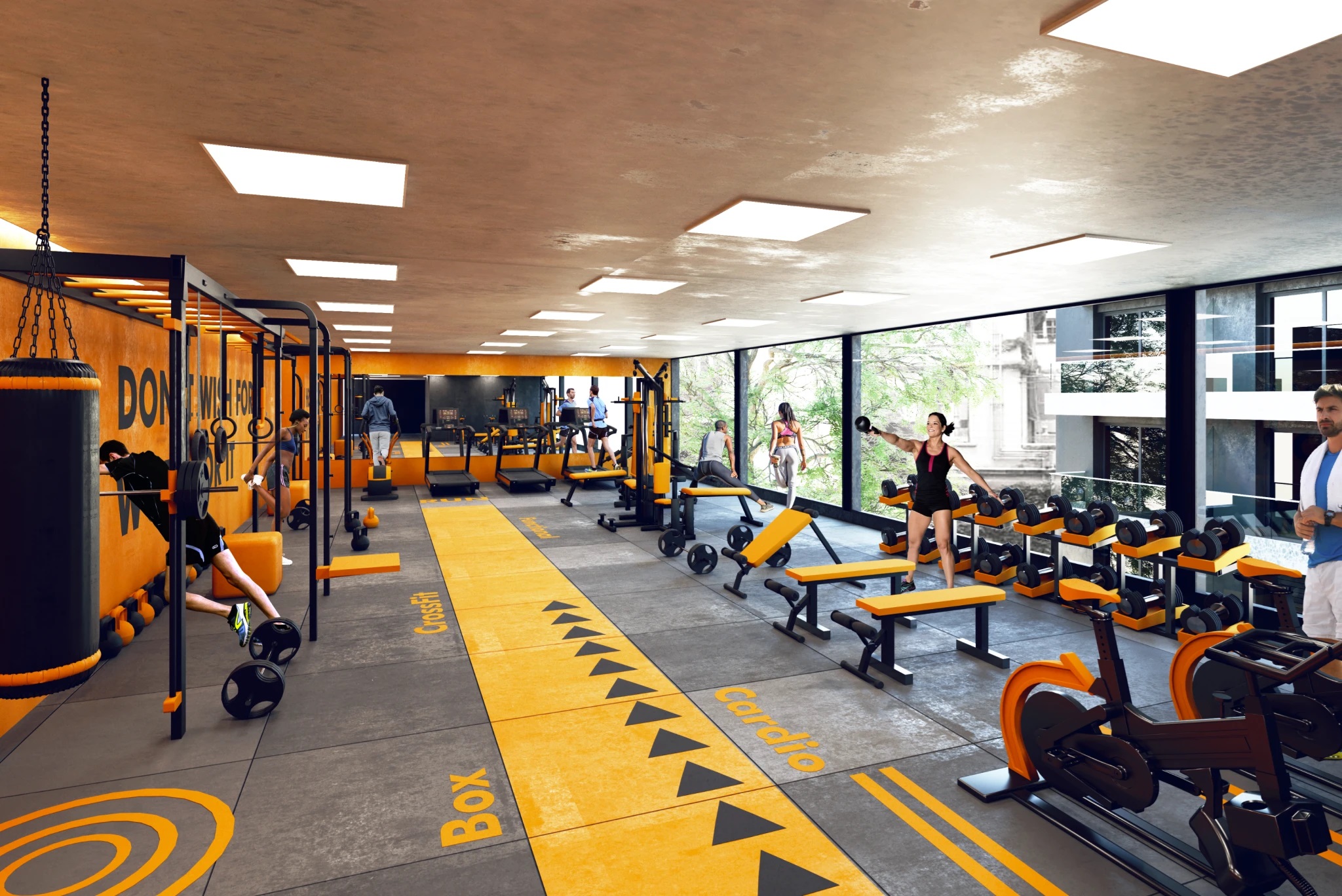 Amenities Fit & Fun en Fit26: Redefiniendo la experiencia de vivir en Montevideo, Fit26 ofrece un innovador concepto de amenities que combina fitness y diversión. El complejo incluye:
