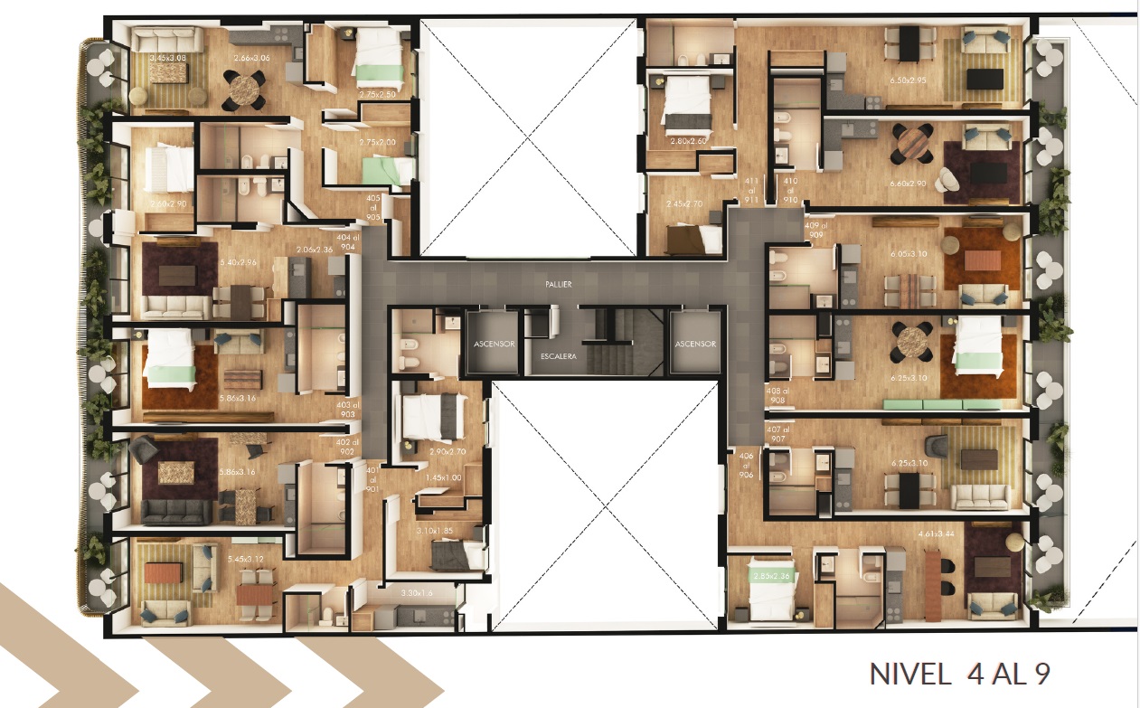 Este edificio de 11 niveles cuenta con apartamentos monoambientes, de 1 y 2 dormitorios, todos diseñados con finas terminaciones y amplios ventanales de piso a techo que inundan los espacios de luz natural. Las ventanas con tecnología DVH proporcionan un excelente aislamiento térmico y acústico, garantizando ambientes confortables y tranquilos.