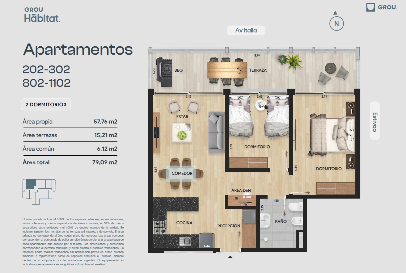 Grou Habitat, cuenta con terminaciones de alta calidad, destacándose por su aislación termo-acústica, aberturas de aluminio con DVH, pisos de porcelanato y vinílicos, entre otros detalles. Además, ofrece un ambiente amigable y práctico para una vida urbana dinámica, rodeado de servicios como hospitales, centros educativos, y comerciales.