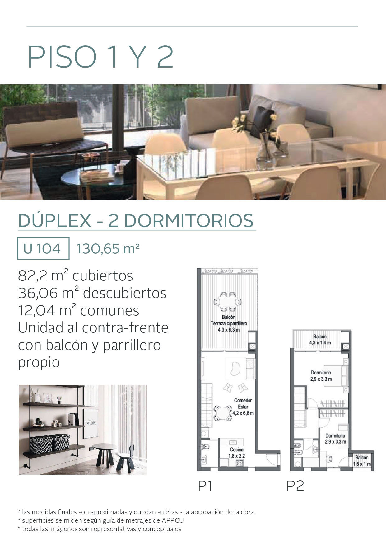 - Dúplex de Dos Dormitorios: Ofrecen un espacio de 130.65 m², diseñado para aquellos que buscan amplitud y confort.