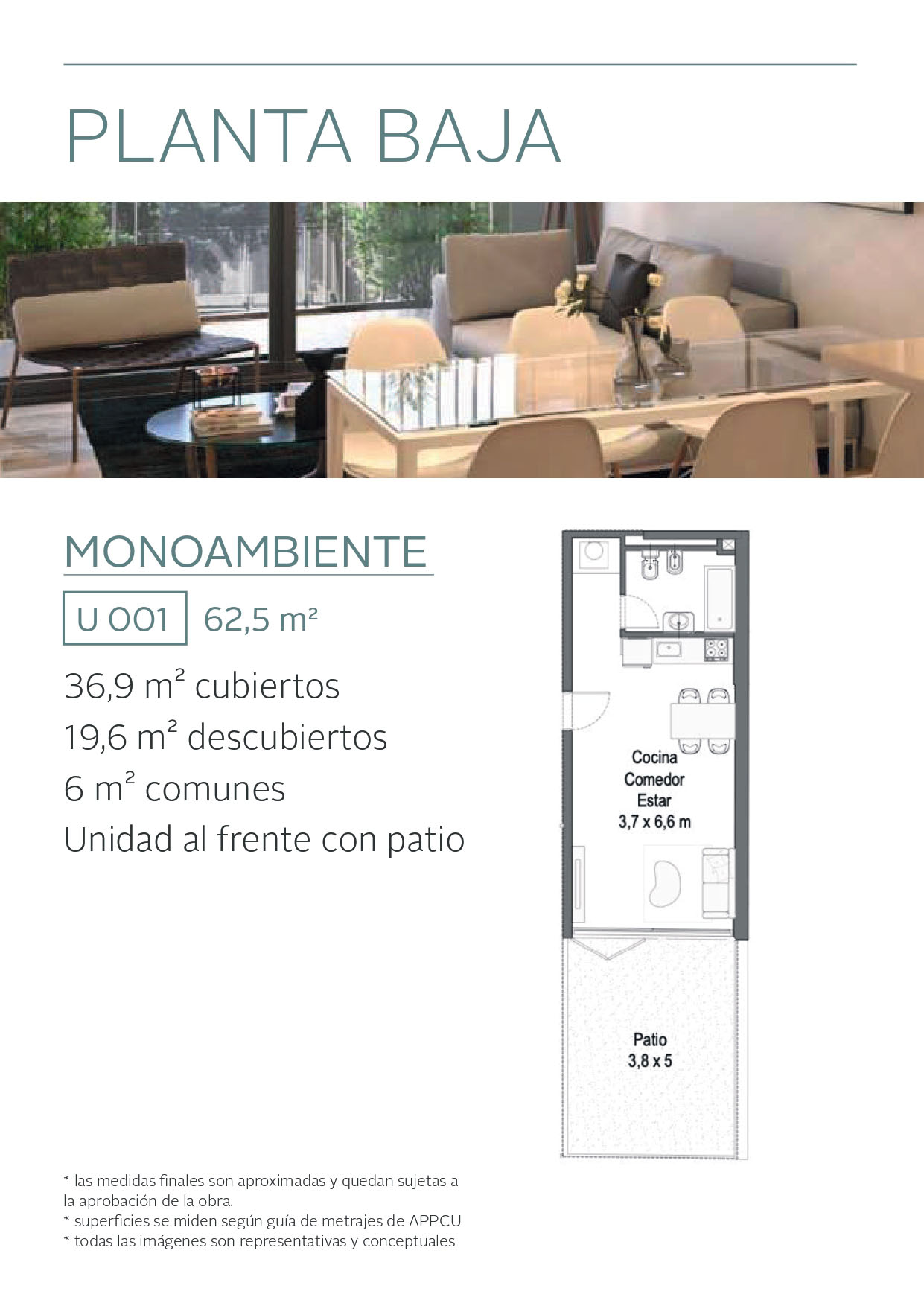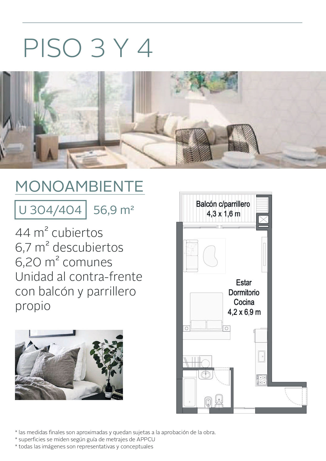 - Monoambientes: 3 unidades con espacios funcionales y diseño abierto.