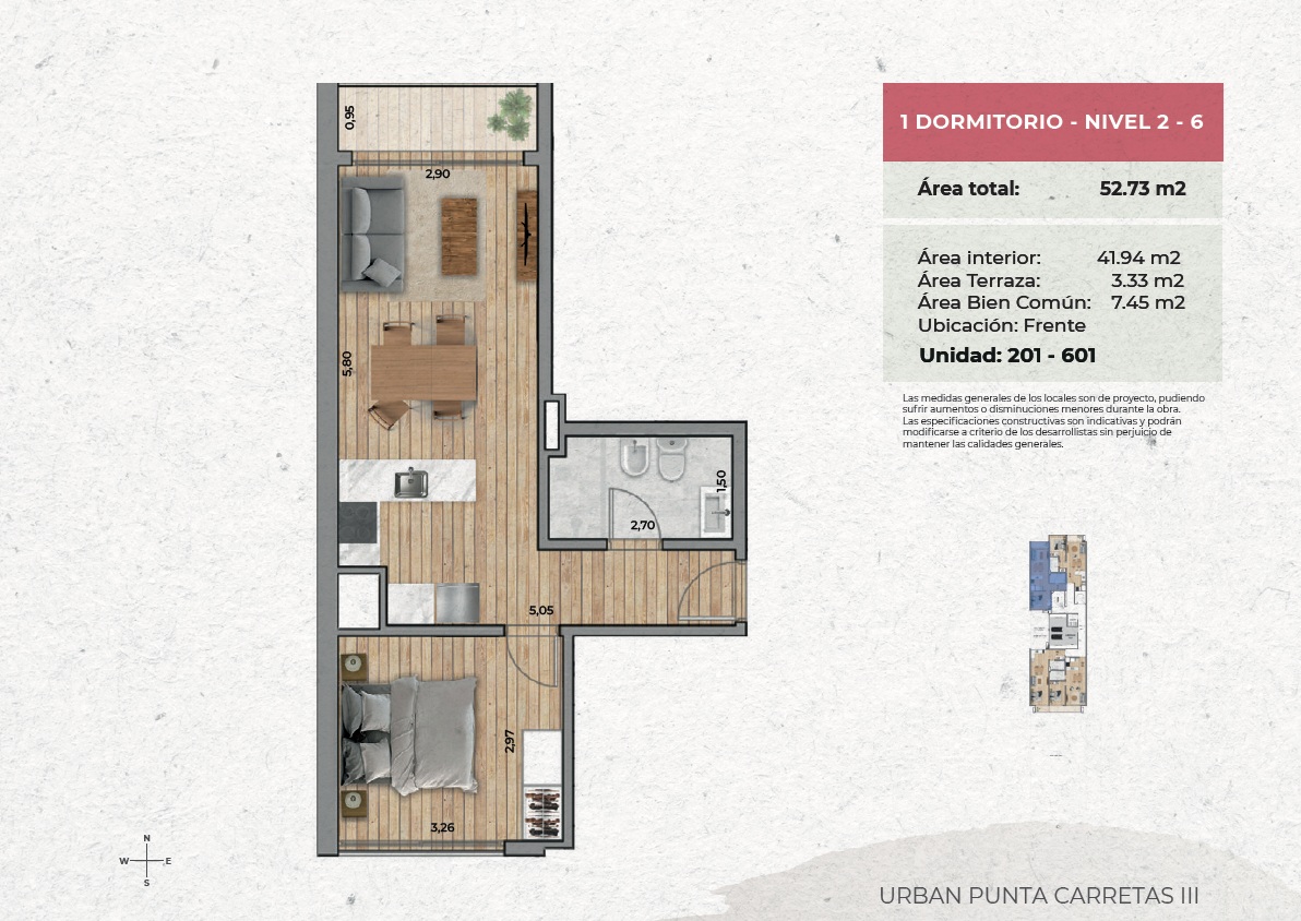 Unidad funcional de 52,73 m² totales, diseñada para ofrecer confort y un excelente aprovechamiento del espacio: