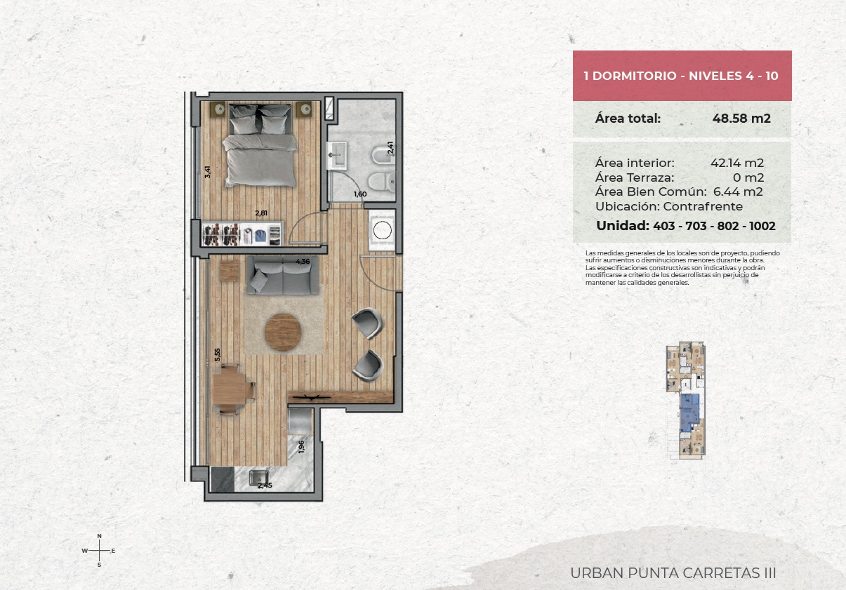 Unidad funcional con 48,58 m² totales, diseñada para optimizar cada metro y ofrecer confort moderno: