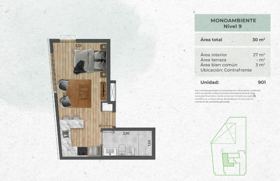 Área total: 57 m² (área interior 41,5 m² + terraza 8,5 m² + área de uso común 7 m²).