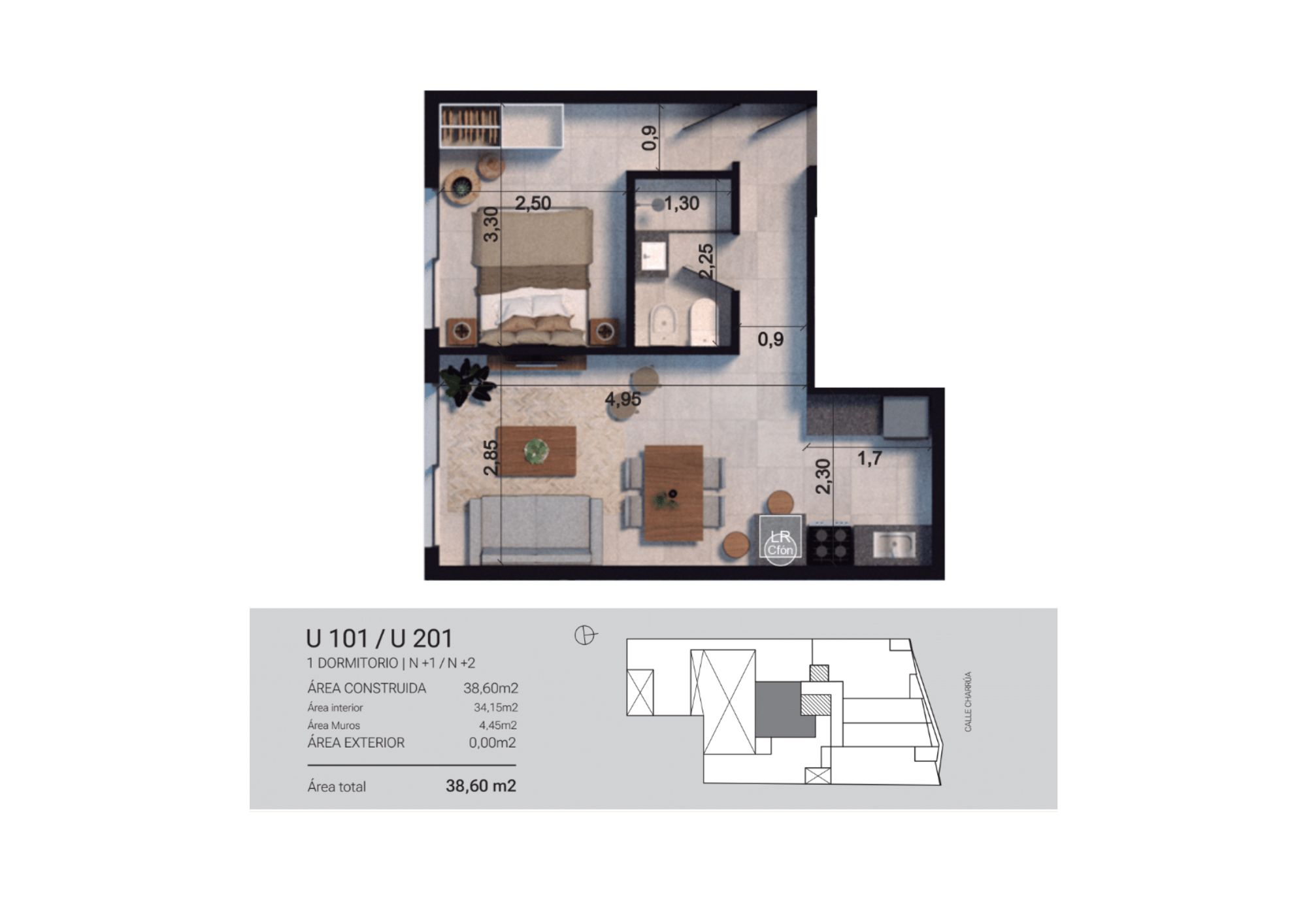 Unidad 201: 1 dormitorio al contra frente